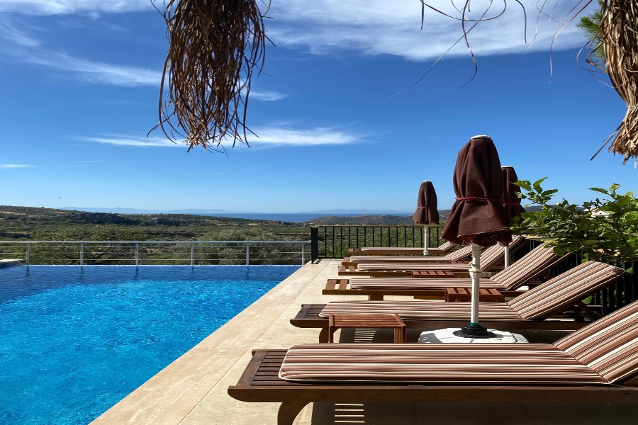 Deniz manzaralı sonsuzluk havuzuyla serinleyebilir, şezlonglarda keyifli vakit geçirebilirsiniz.